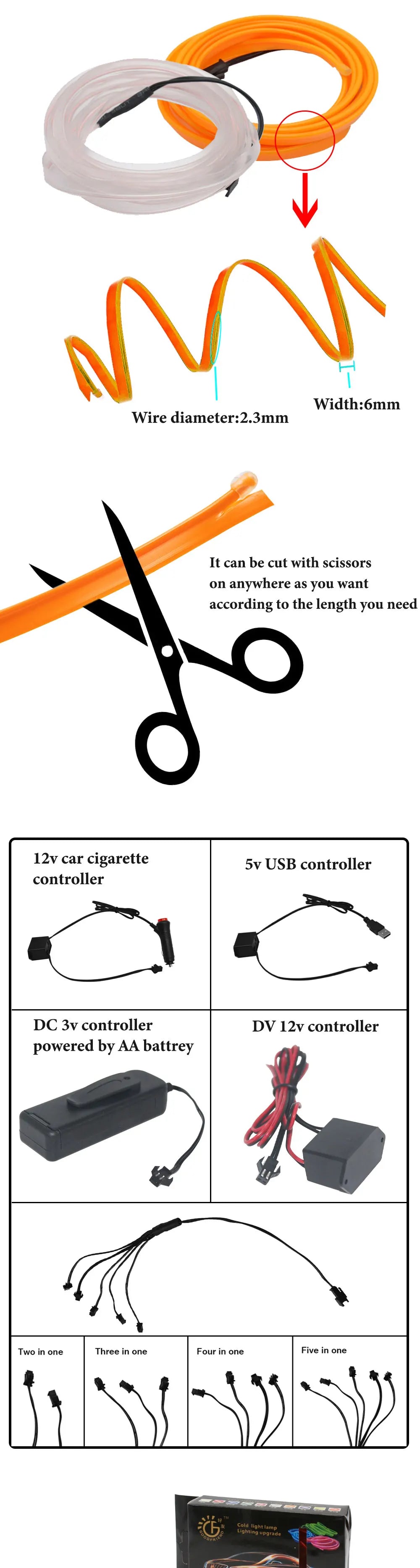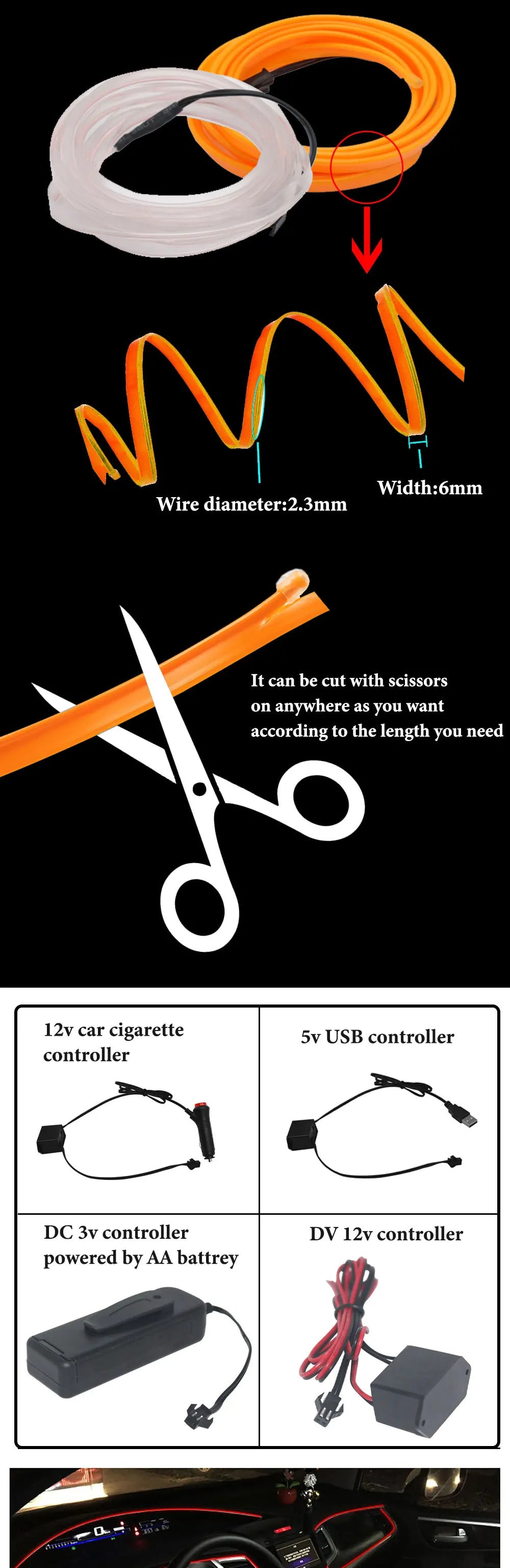 3M/5M Car Interior Atmosphere Led Strip Light Flexible Neon EL Wiring With USB Interface Auto Decorative Lamp Universal